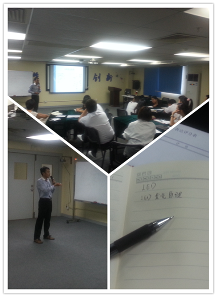 本次人員行業知識培訓是由王講師帶來的LED相關知識介紹。無論全球還是中國市場,從技術到應用,在綠色節能方面,當前照明行業正處于革命性更新換代時期。白熾燈行將被淘汰,節能燈如日中天,LED方興未艾。正是基于對LED前景看好,從國際半導體巨頭到無名小廠,紛紛切入LED領域。王講師的娓娓道來使在場全體學員如沐春風。