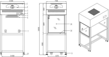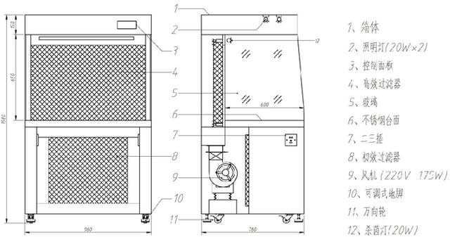 "梓凈"垂垂直流超凈工作臺規格尺寸及技術參數: